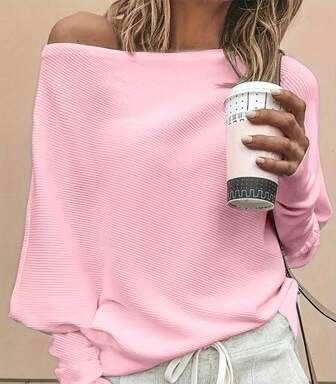 Jersey de punto fino en corte desigual con el cuello barco media manga de corte murcielago.