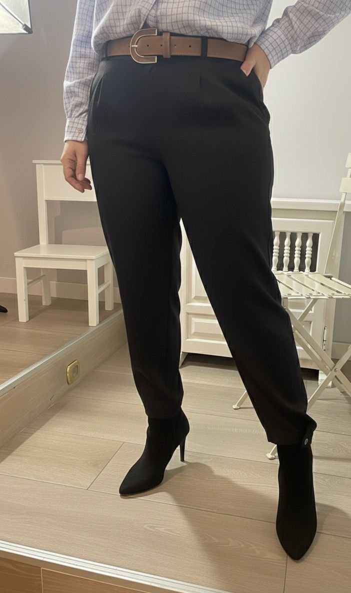 Pantalón bombacho con botón en la cintura goma en la parte trasera efecto del pantalón lo crea el botón del tobillo